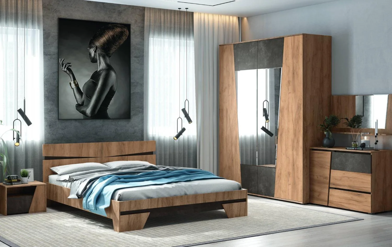 - кровать Соренто (длина 2074 мм, ширина 1674 мм, высота 800 мм). Кровать оснащена настилом из деревянных ламелей. Матрас приобретается дополнительно.