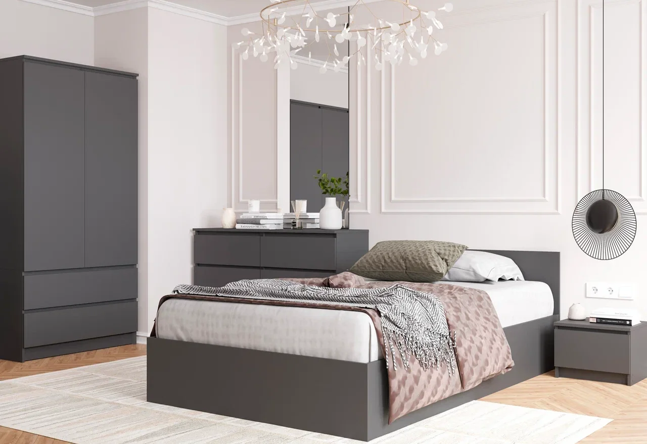 - Кровать Мори КРМ 1600.1 графит. Габаритный размер: В65 х Ш164 х Д203 см. Спальное место 1600х2000 мм.