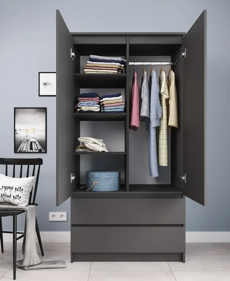 - Шкаф распашной Мори МШ-900.1, графит. Габаритный размер: В180 х Ш90 х Г50 см.