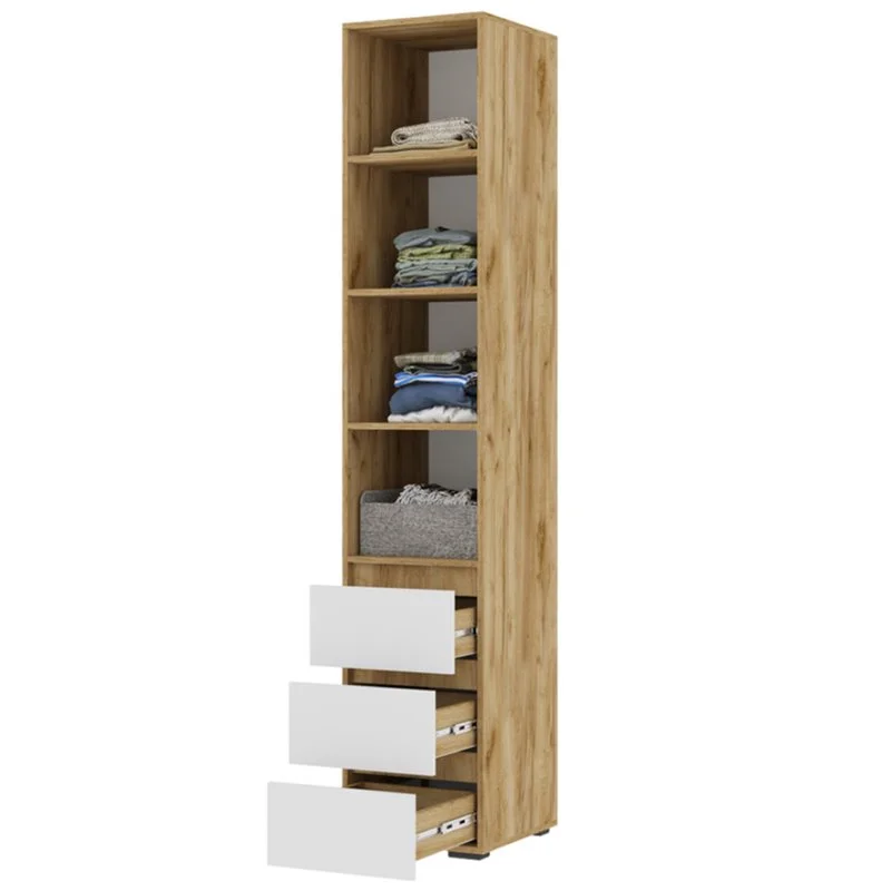 Пенал имеет ширину 40 см, глубину 46 см и высоту 210 см, что позволяет разместить его даже в небольших помещениях. В нем предусмотрено 3 полки и 3 выдвижных ящика, что обеспечивает достаточно места для хранения различных предметов.