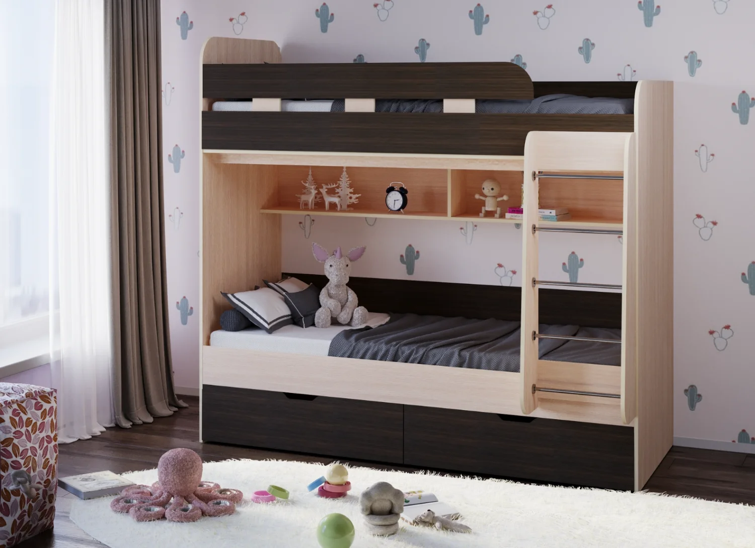 Спальное место под матрас 800*1900 мм. Корпус: дуб молочный. Цвет фасада венге. Материал ЛДСП.