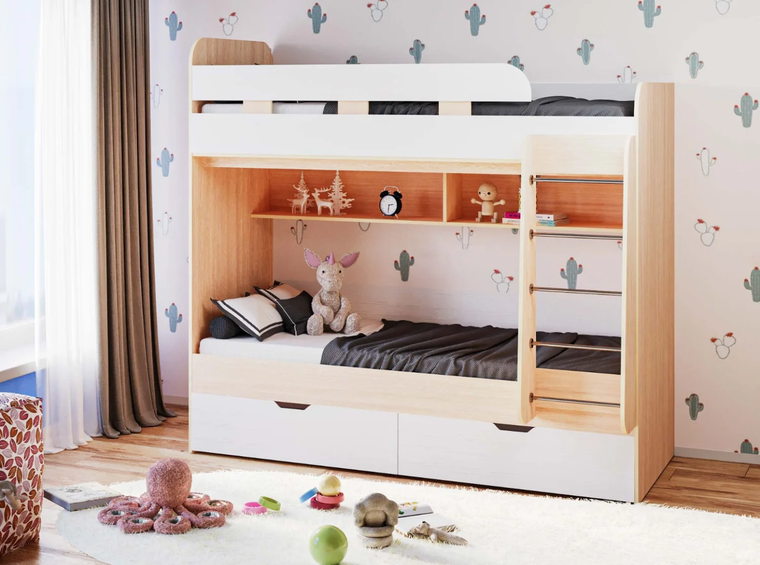 Спальное место под матрас 800*1900 мм. Корпус: дуб молочный. Цвет фасада белый. Материал ЛДСП.