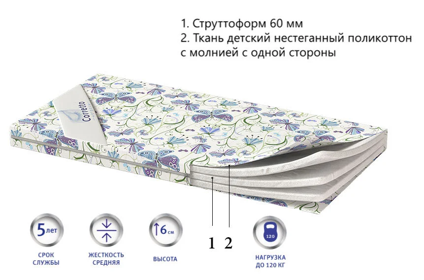 Состав матраса: струттофайбер 60 мм (ортопена).