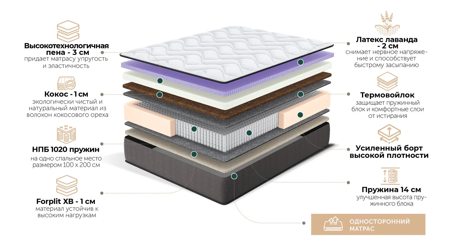 Кокос - 1 см. Экологически чистый материал придает матрасу жесткость.