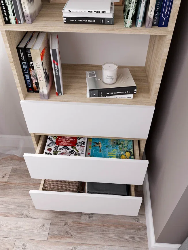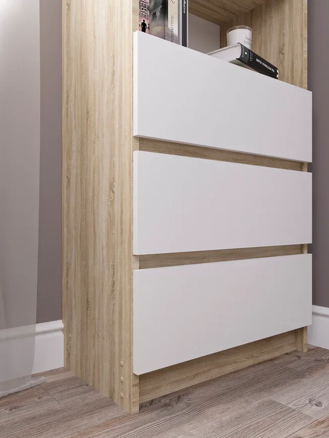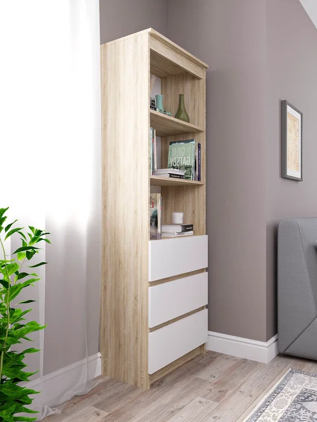 Цвет ЛДСП дуб сонома/белый придает стеллажу стильный и современный вид, который легко впишется в любой интерьер.