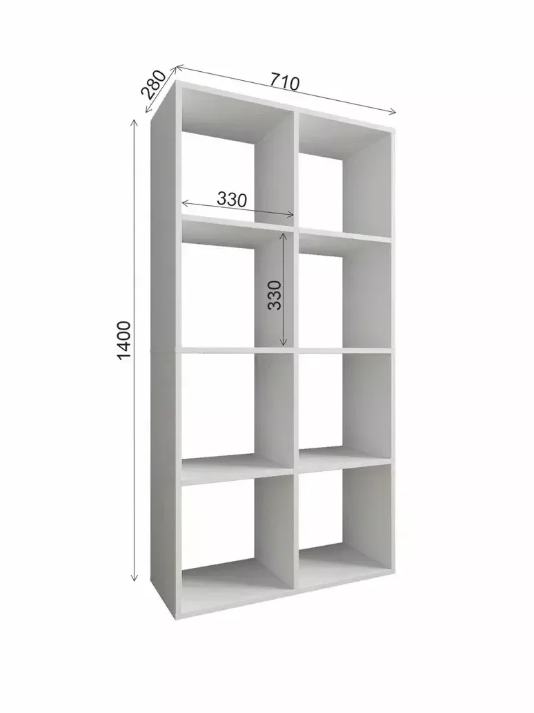 Стеллаж имеет размеры 1400 мм в высоту, 710 мм в ширину и 280 мм в глубину, что позволяет разместить на нем большое количество вещей. Открытая конструкция стеллажа обеспечивает легкий доступ к содержимому, а его модульная конструкция позволяет легко переставлять полки и менять их расположение.
