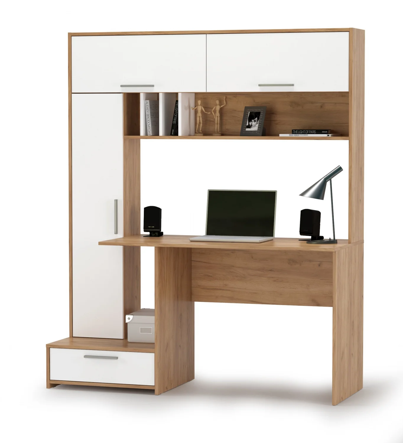 Стол письменный Лайт 03.243 представляет собой стильное и функциональное решение для организации рабочего пространства. Стол имеет размеры 150 х 57 х 180 см, что позволяет разместить его даже в небольших помещениях. Цвет дуб крафт золотой/белый премиум придает столу изысканный и современный вид. Тумба оснащена ящиком для хранения, что позволяет удобно разместить все необходимые предметы.