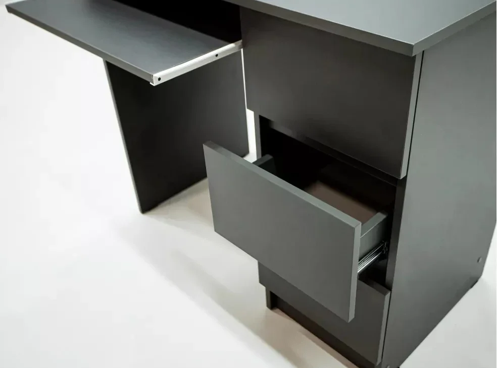 Стол имеет графитовый цвет, который придаст вашему рабочему месту стильный и современный вид. Особенностью стола является его конструкция. Ящики расположены справа, что позволяет удобно хранить необходимые предметы и документы. Глубина ящиков составляет 40 см, что обеспечивает достаточное пространство для хранения.