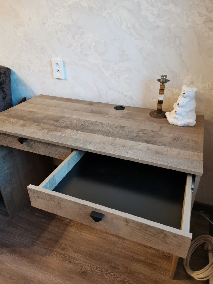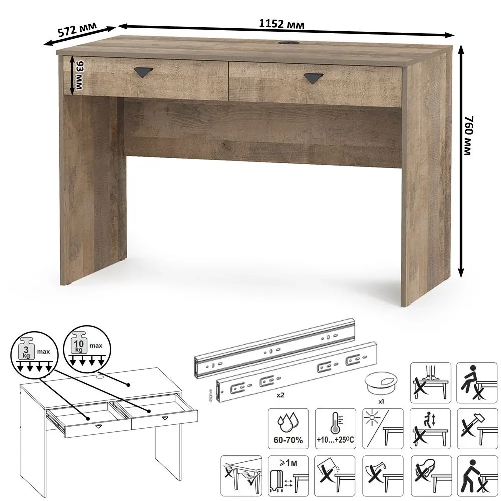 Материалы изготовления: ламинированная ДСП 16 мм, ДВП, кромка ПВХ. Выдвижными ящики на шариковых направляющих полного выдвижения, что обеспечивает легкое открывание. Предусмотрены пластиковые подпятники для защиты поверхности пола от механических повреждений.