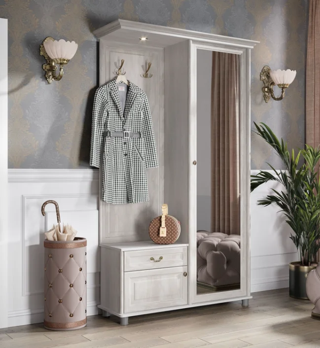 Размер с карнизом ВхШхГ 2100 х 1182 х 400 мм, без карниза: 2135 х 1252 х 435 мм. Карниз в комплекте.