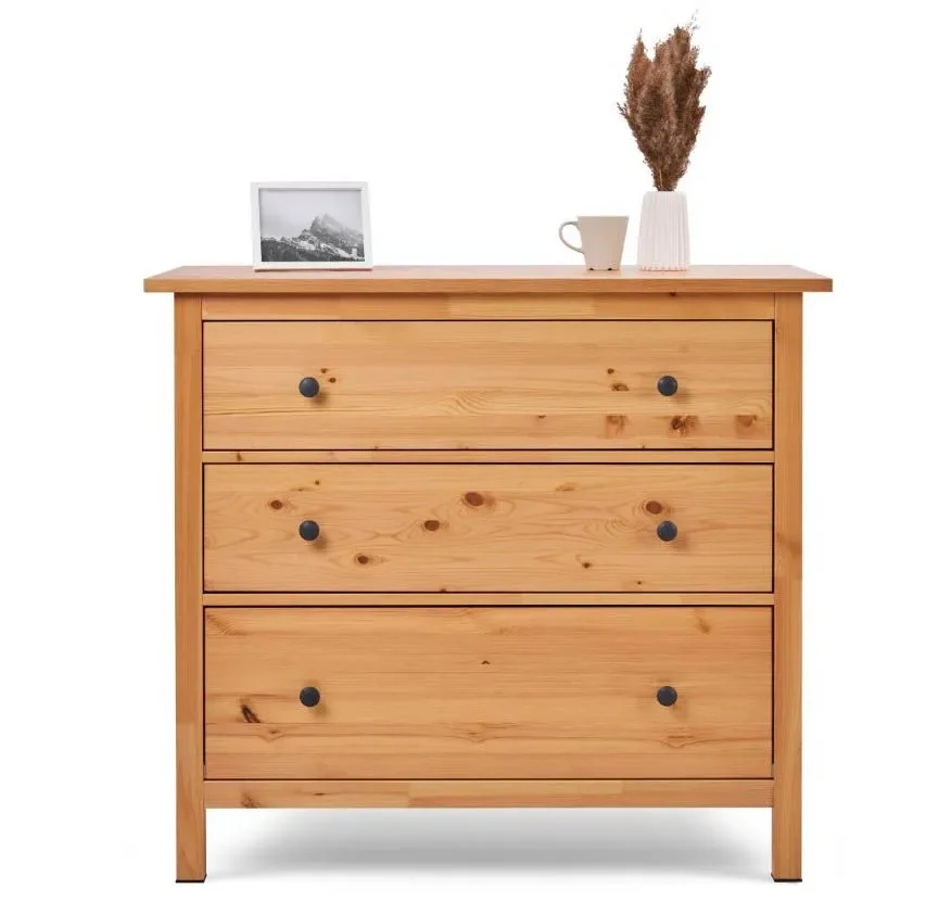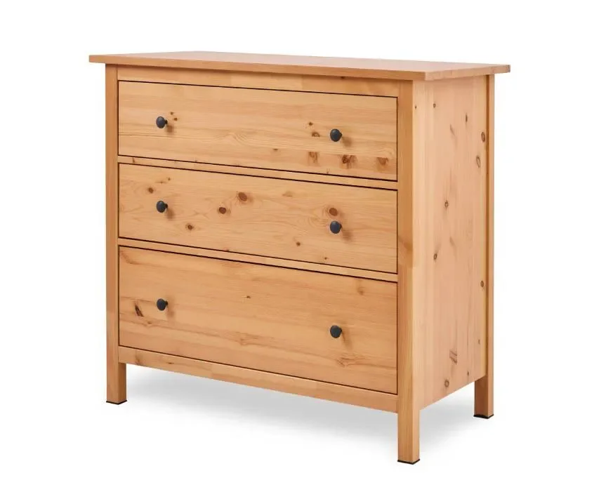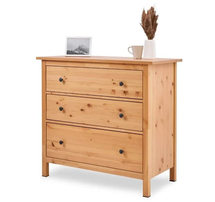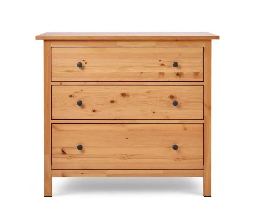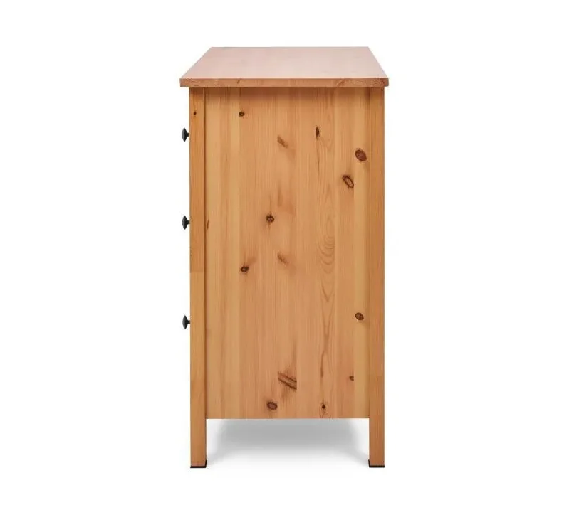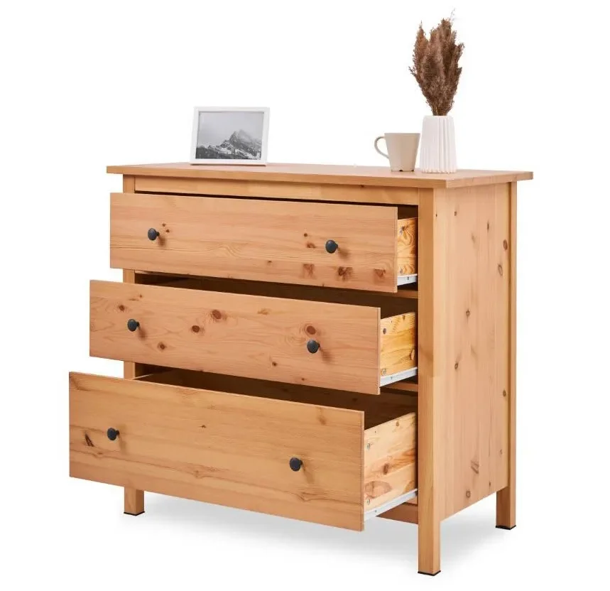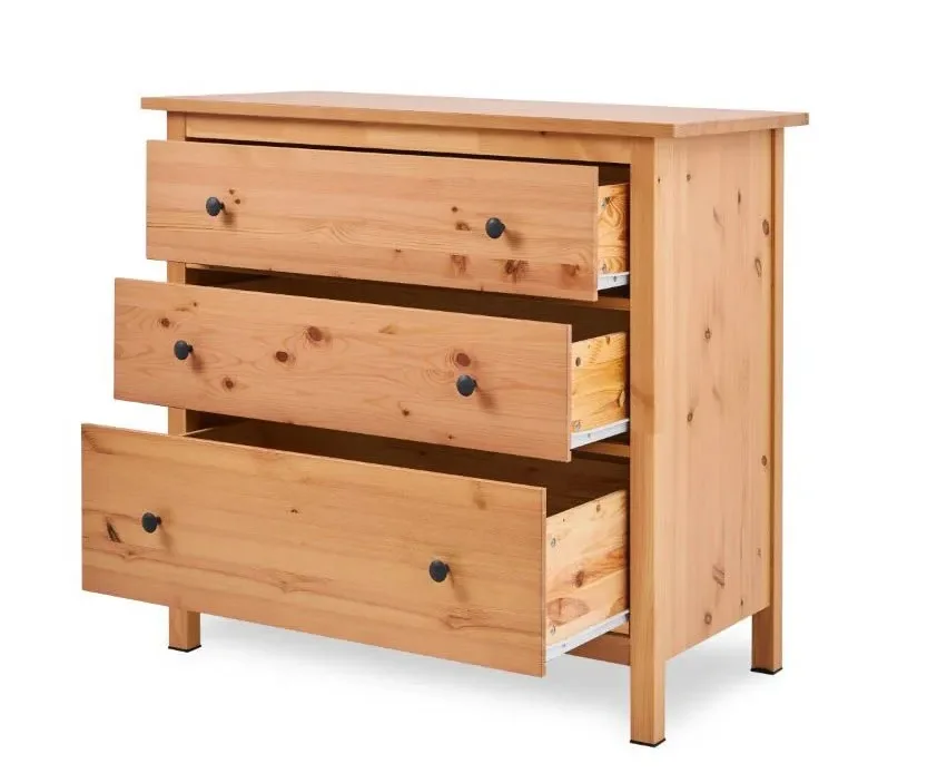 В комоде предусмотрено три ящика на роликовых направляющих, которые изнутри не покрашены, как основная часть, что придает им естественный вид.