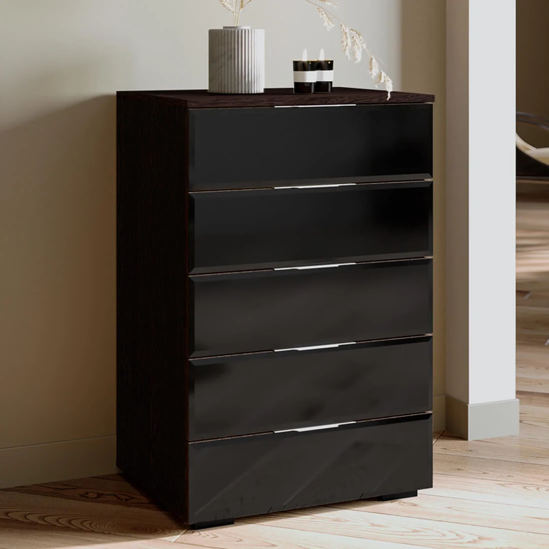 Максимальная нагрузка на ящик - 10 кг. Максимальная нагрузка на крышку комода - 7 кг.