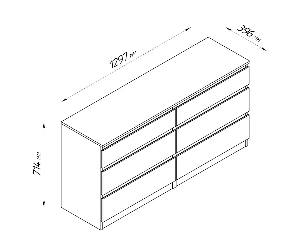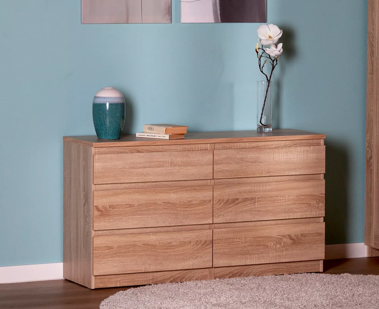 Широкий комод на 6 выдвижных ящика. Цвет дуб сонома. Шариковые направляющие. Распределенная нагрузка на ящик 8 кг.