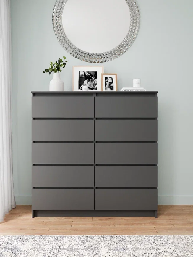 Комод Мори МК 1200.10 графит имеет модульную конструкцию, что позволяет легко комбинировать его с другими элементами мебели из линейки "Мори".