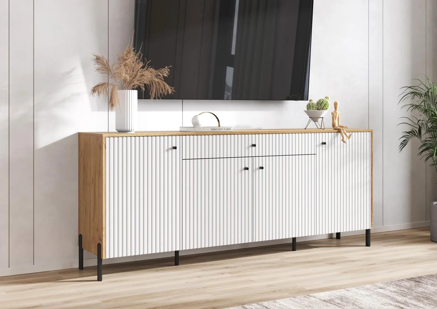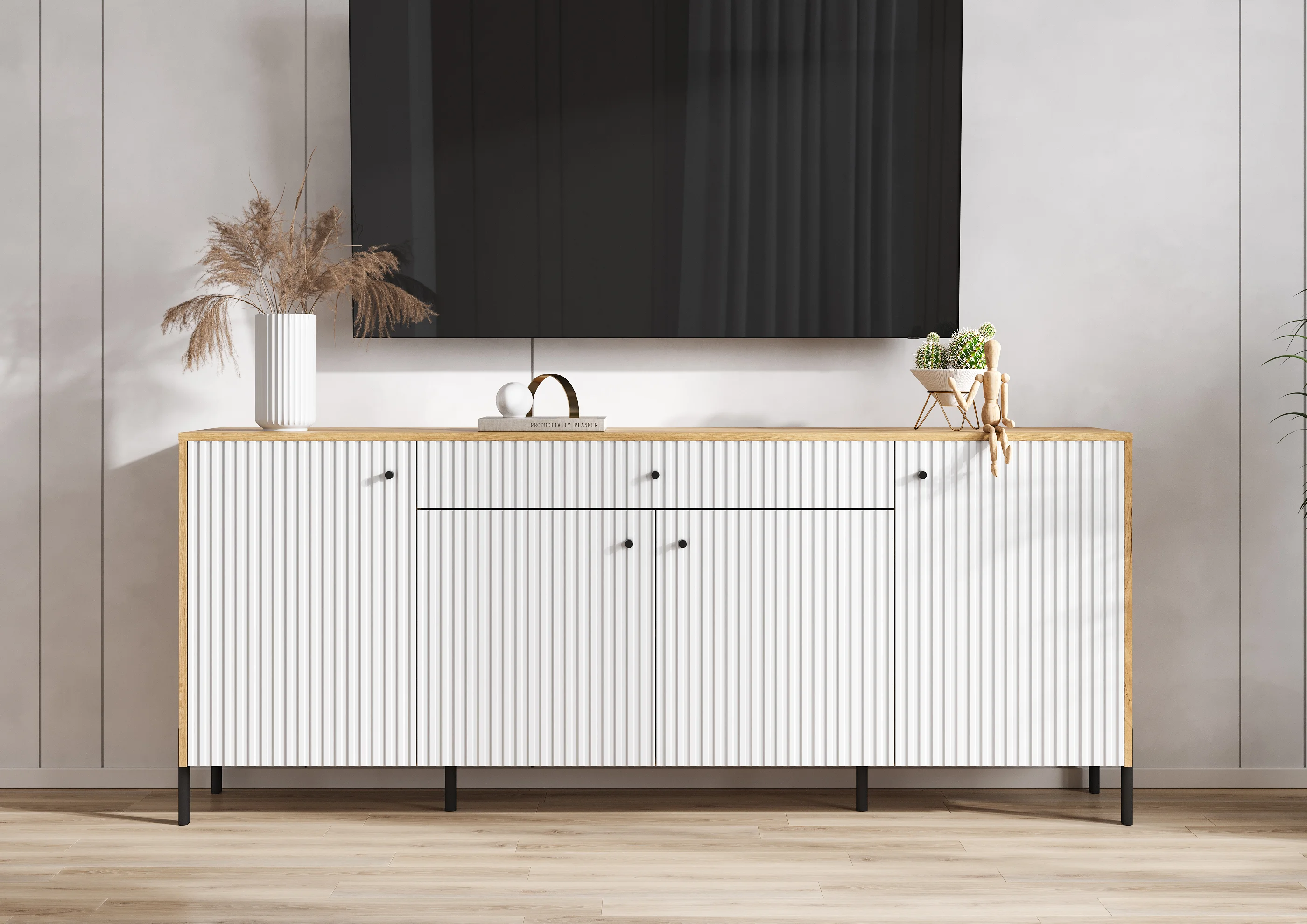 Комод с фрезерованными фасадами и современными шариковыми направляющими обеспечивает легкость в использовании и долговечность.