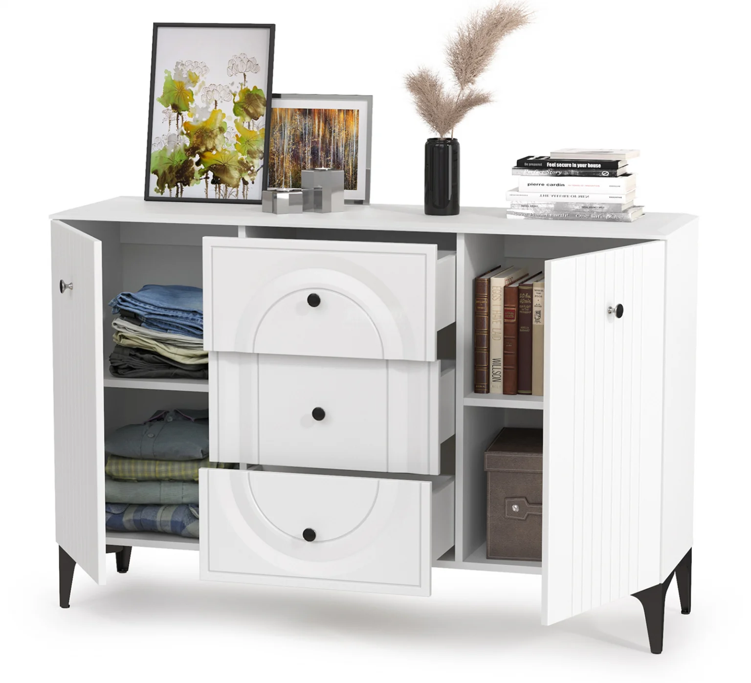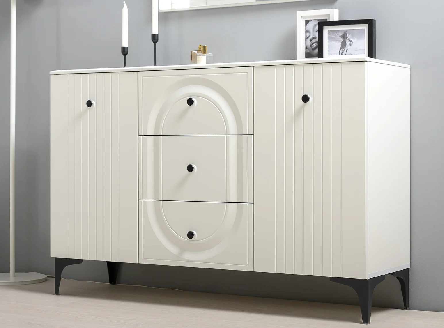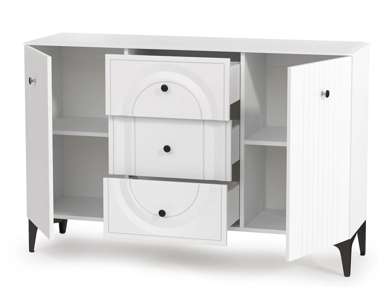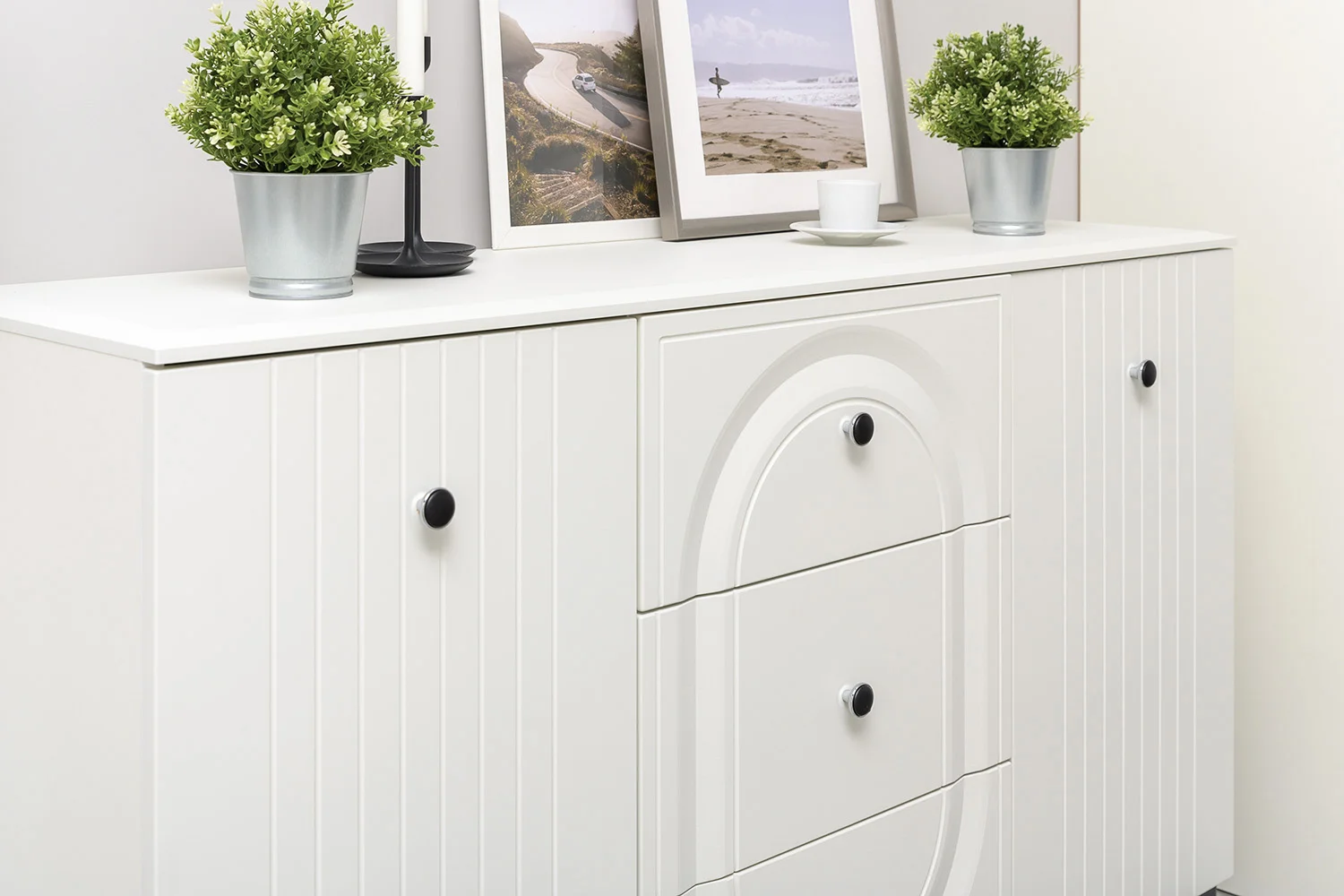 Комод Валенсия 13.309 белый шагрень - стильный и функциональный элемент интерьера, который подойдет для различных помещений. Комод выполнен в белом цвете с матовой поверхностью, что придает ему элегантный и современный вид. Цвет ЛДСП и МДФ - белый шагрень, что делает его визуально легким и воздушным. Размеры комода составляют 133,2 х 38,4 х 87,5 см, что позволяет разместить его даже в небольших помещениях. Три ящика с шариковыми направляющими полного выдвижения обеспечивают удобство использования и позволяют хранить большое количество вещей.