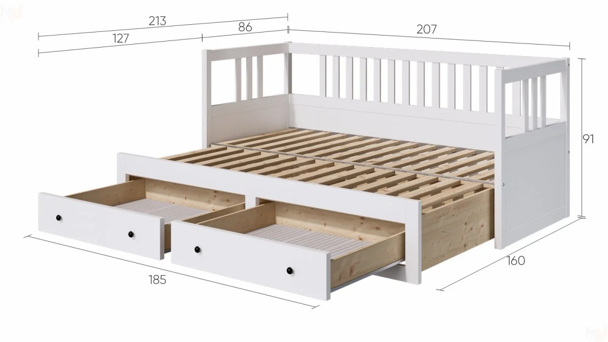 Рекомендуемая высота матраса 10-15 см. Максимальная нагрузка на спальное место - 120 кг.