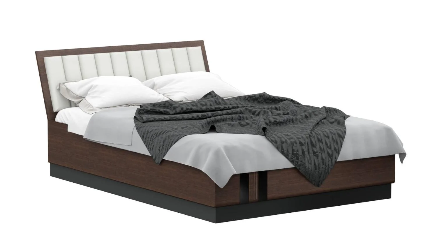 Декор с фрезеровкой и черными полосами, и наклонным изголовьем с мягкой вставкой.