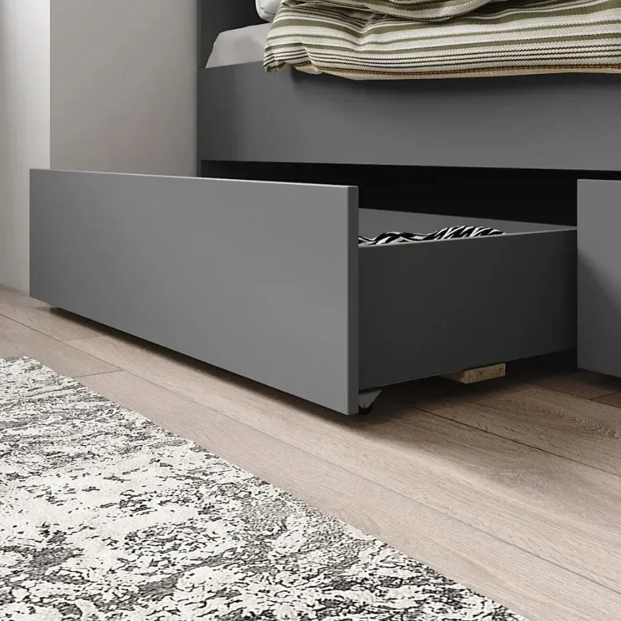 Особенностью данной модели является наличие двух выдвижных ящиков, которые позволяют хранить различные вещи, такие как постельное белье, игрушки или другие предметы. Это не только экономит пространство в комнате, но и делает кровать более функциональной.