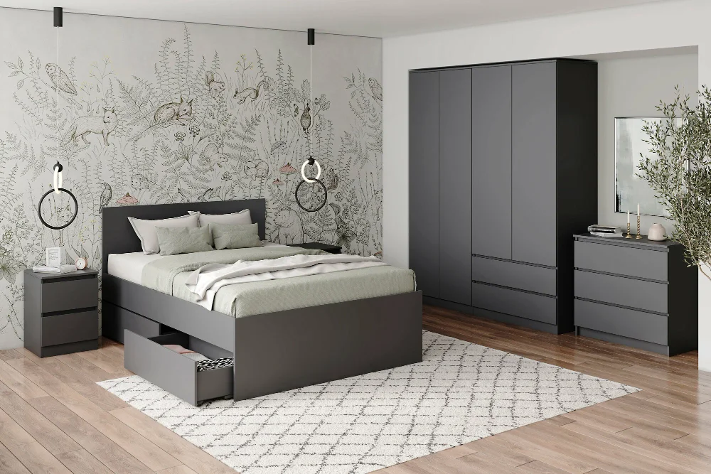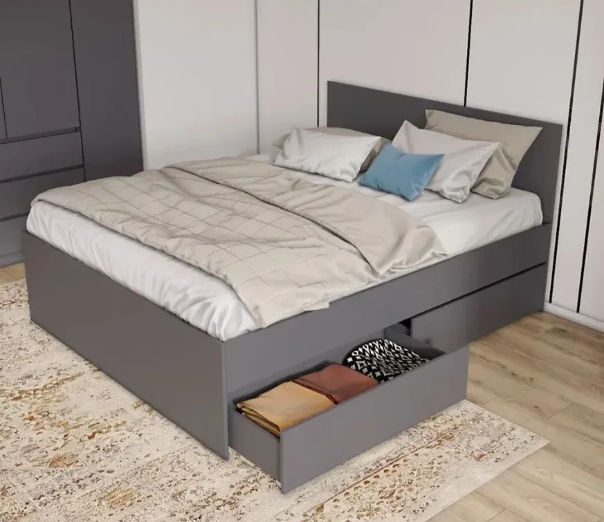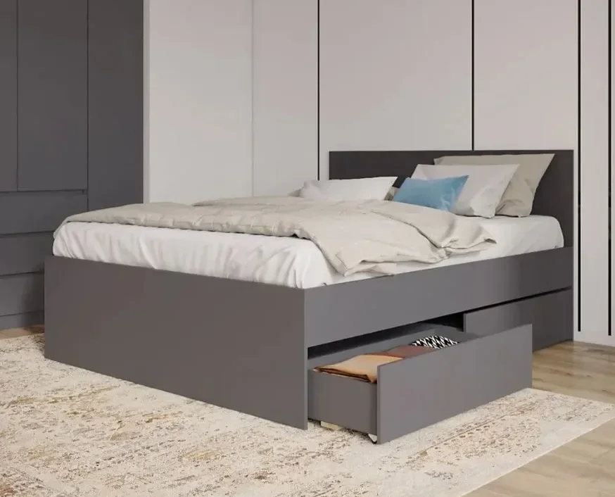 Кровать выполнена из качественного материала ЛДСП, который обеспечивает долговечность и надежность конструкции. Цвет графит придает кровати стильный и современный вид, который легко впишется в любой интерьер.