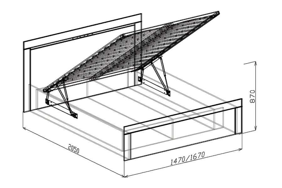 Ортопедическое основание с ламелями, усиленное по периметру, механизм подъема на газовых кронштейнах, вместительный короб для белья.