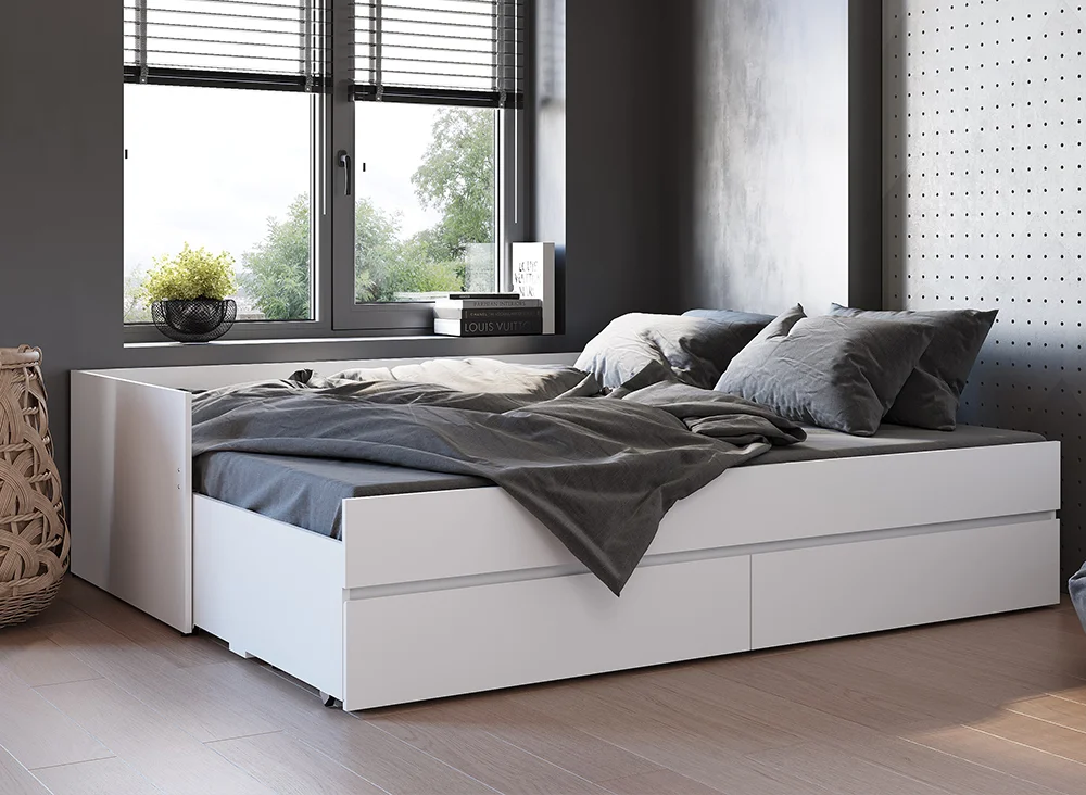 Спальное место: 900*2000, в разложенном виде: 1800*2000. Основание для кровати в комплекте - ламели для раздвижных кроватей.