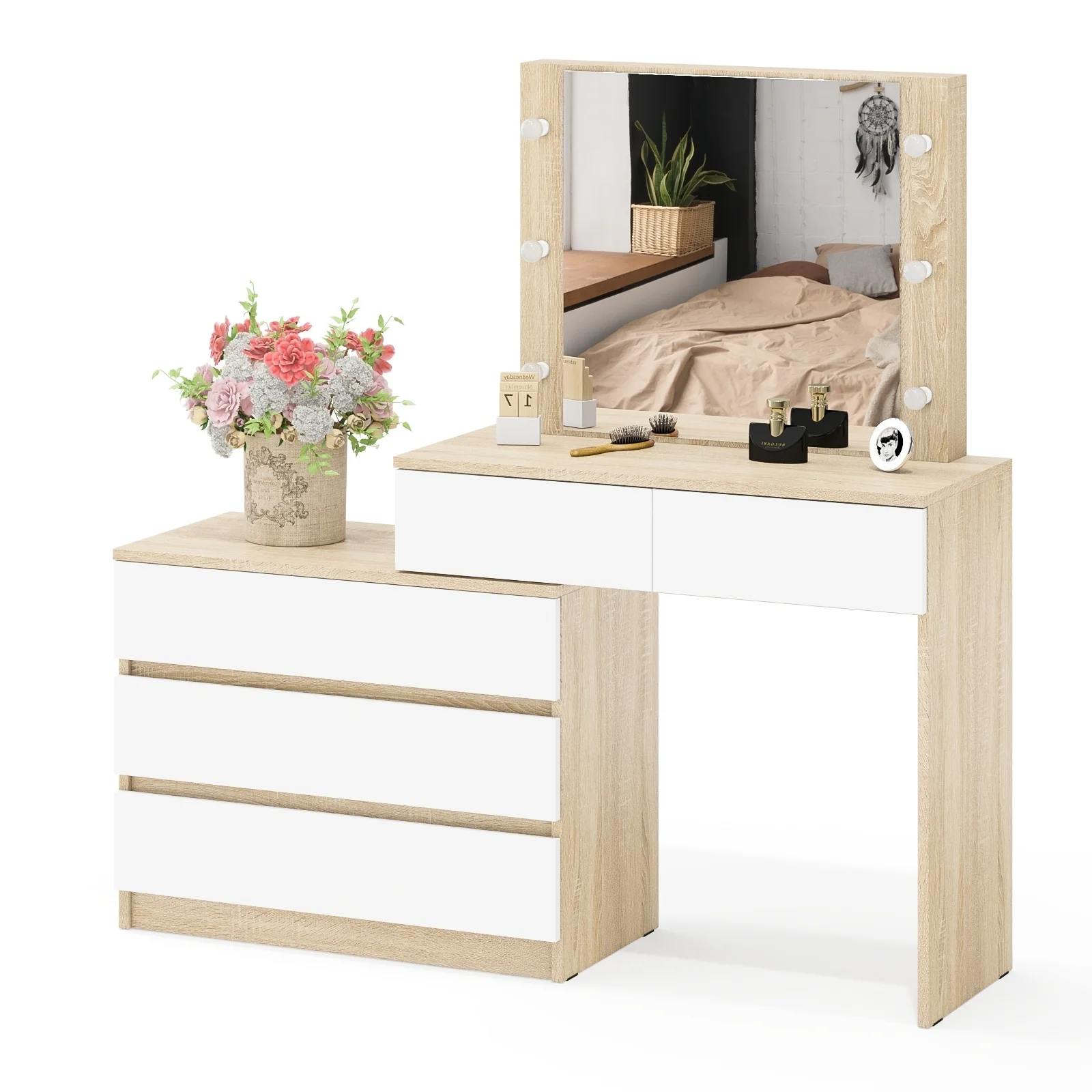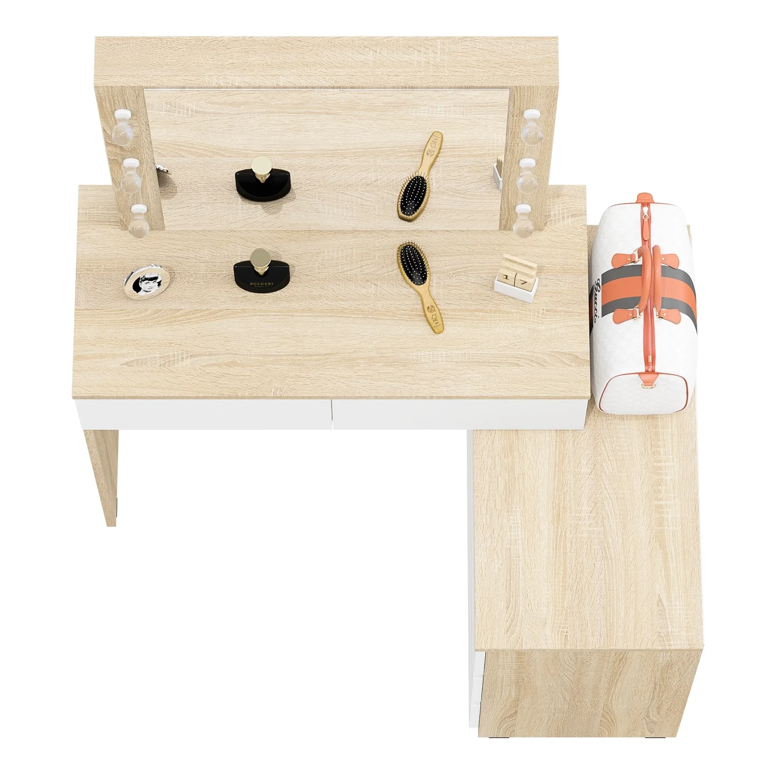 Габаритные размеры туалетного столика (ШхГхВ): прямого 142 х 40 х 142,5 см, углового - 111 х 80,4 х 142,5 см.