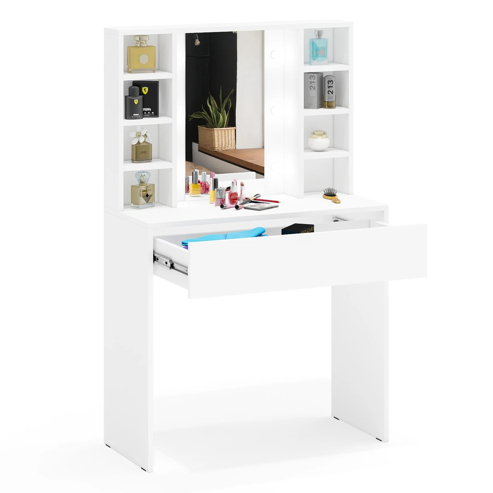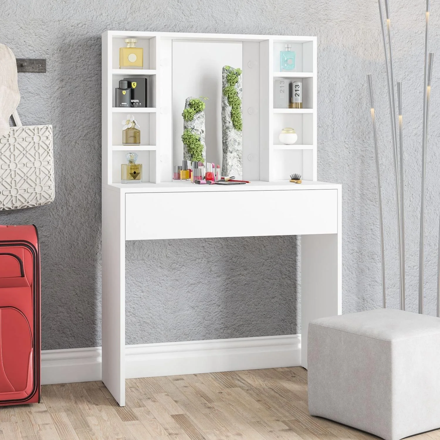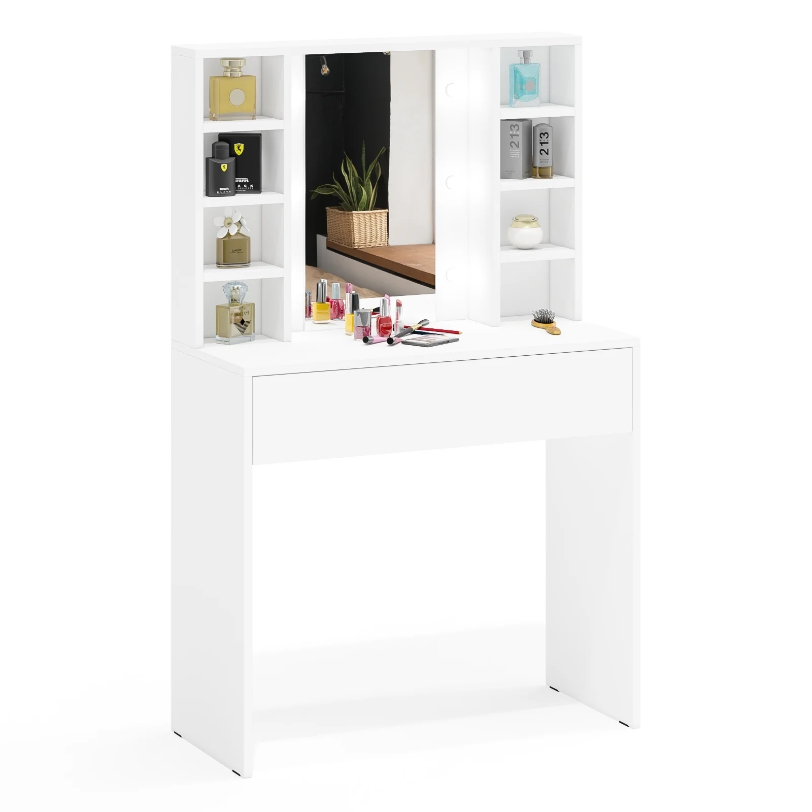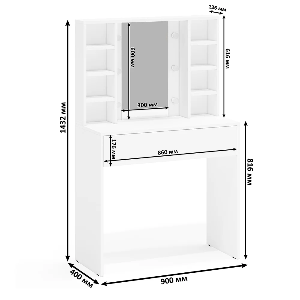 Габаритные размеры косметического стола (ШхГхВ): 90 х 40 х 143,2 см.