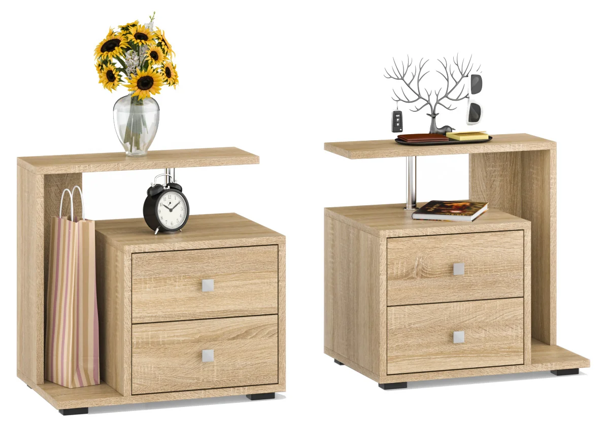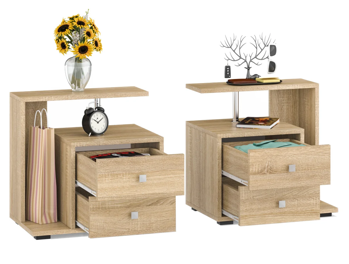 Комплект из двух прикроватных тумб Камелия – составит идеальный комплект мебели с кроватью и обеспечит комфорт. Каждая тумбочка имеет пару выдвижных ящиков и пару открытых ниш. Конструкция тумб симметрична правая и левая. В ящиках достаточно места для нужных перед сном мелочей. Тумбы изготовлены из ламинированной ДСП, торцы деталей закромлены пленкой ПВХ. Поставка производится в разобранном виде в прочной упаковке, защищающей мебель при транспортировке.