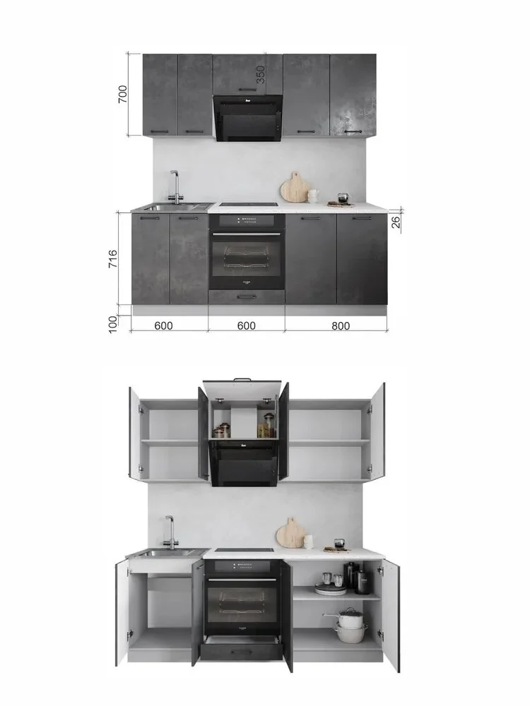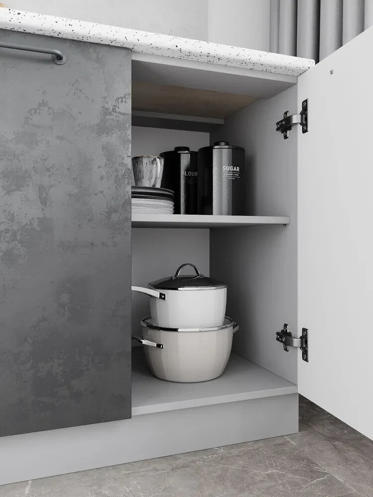 В комплекте верхних модулей боковины являются универсальными и подходят от одного модуля к другому, что упрощает сборку. Модуль СМ600 подходит для установки накладной мойки (мойка в комплект не входит). В комплекте раздельная столешница 800 мм. При желании столешницу можно дозаказать единую. Модули соединяются между собой межсекционными стяжками, образуя единый комплекс.
