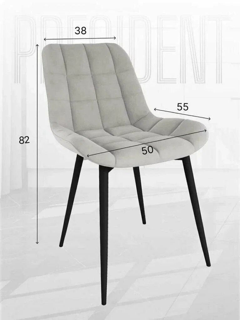 Материал опоры - металл, что гарантирует прочность и долговечность конструкции. Материал обивки - велюр, который приятен на ощупь и обладает антивандальными свойствами. Стул Президент бежевый выполнен в бежевом цвете, который легко впишется в любой интерьер кухни. Высота стула составляет 85 см, ширина - 50 см, глубина - 55 см.
