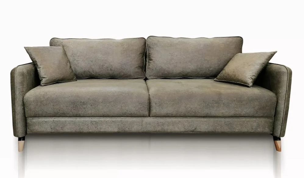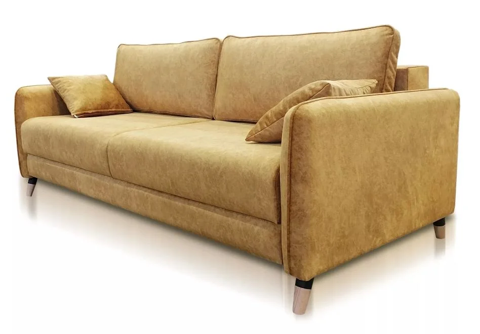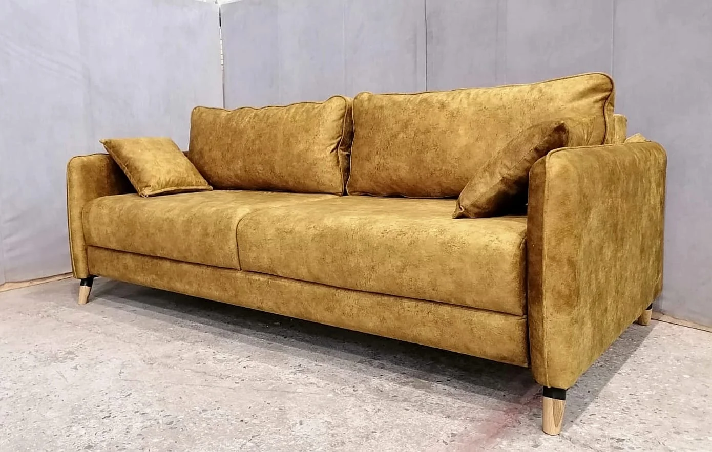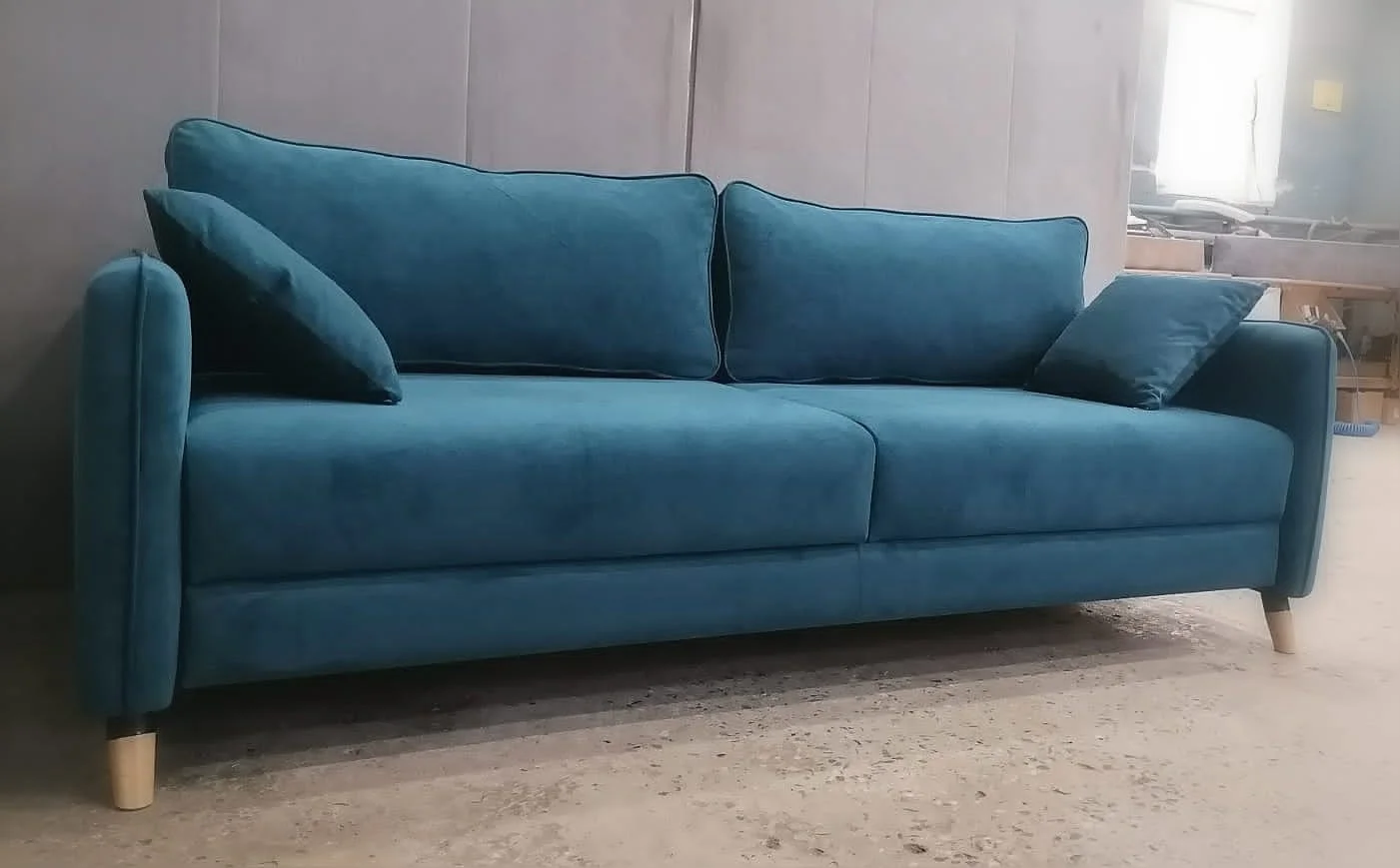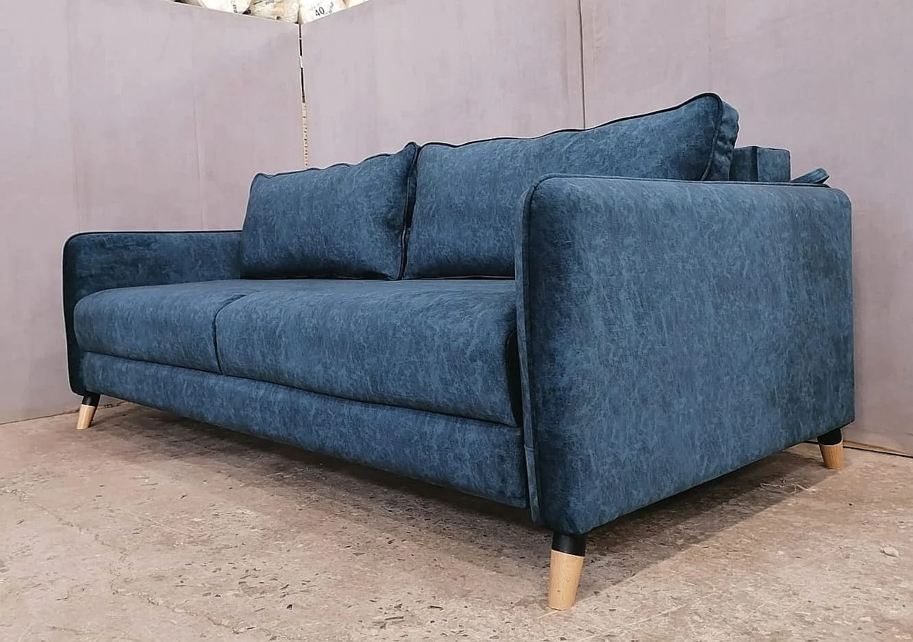 Ножки из натурального бука с металлическим креплением. Все боковые и задние панели дивана обшиты мебельной тканью.
