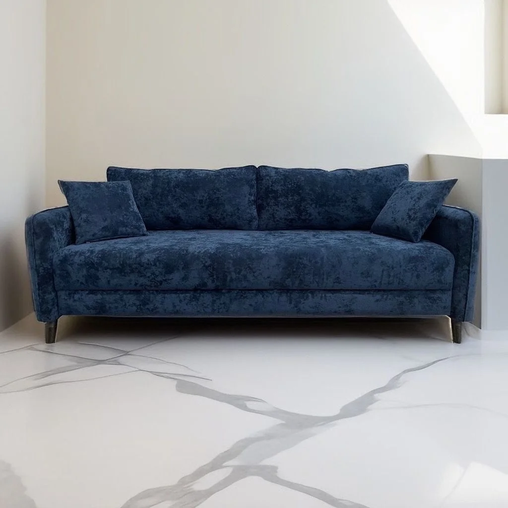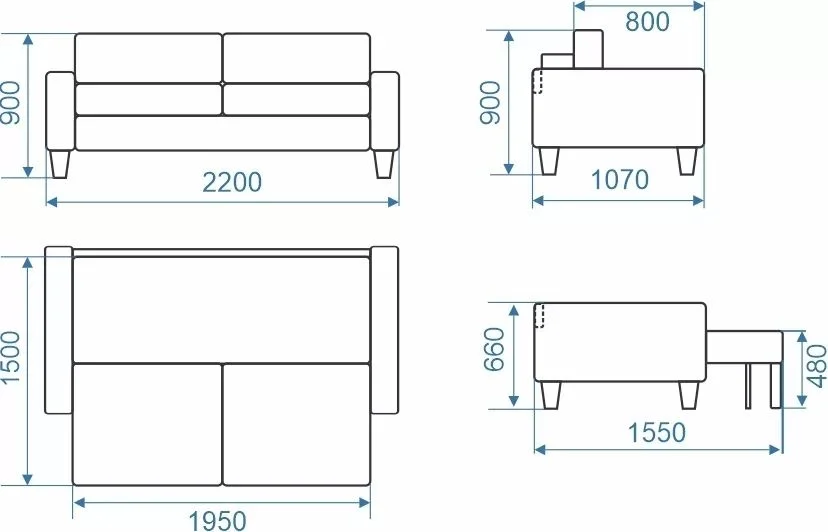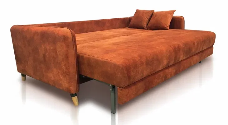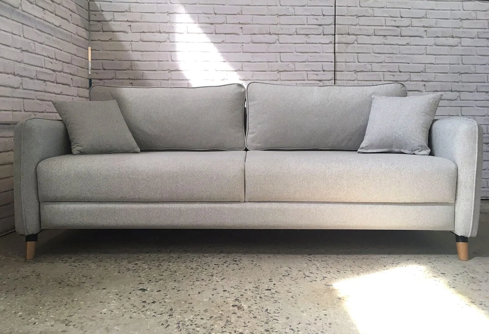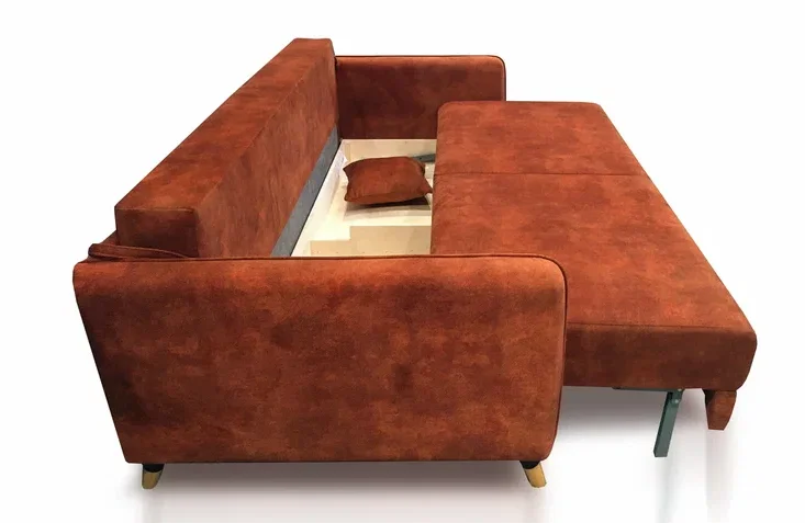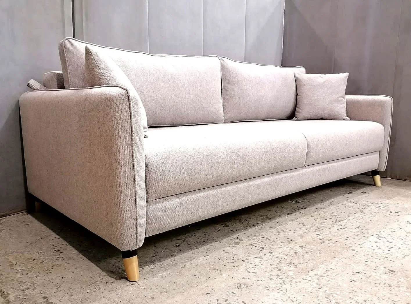 Ножки из натурального бука с металлическим креплением. Все боковые и задние панели дивана обшиты мебельной тканью.
