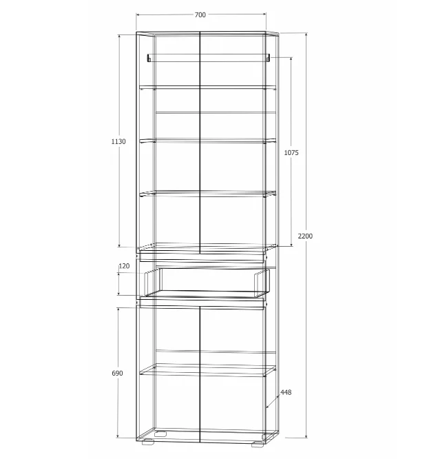 Этот шкаф является частью модульной гостиной. Размеры и конструкция шкафа позволяют удобно разместить вещи. Модульная система даёт возможность гибко подходить к организации пространства.