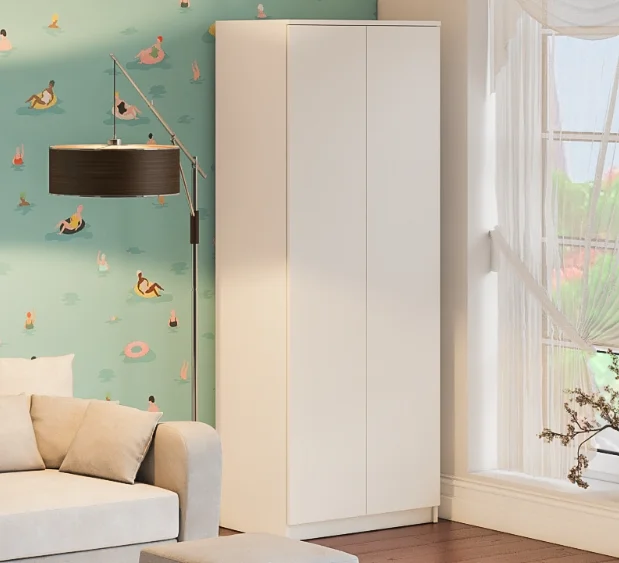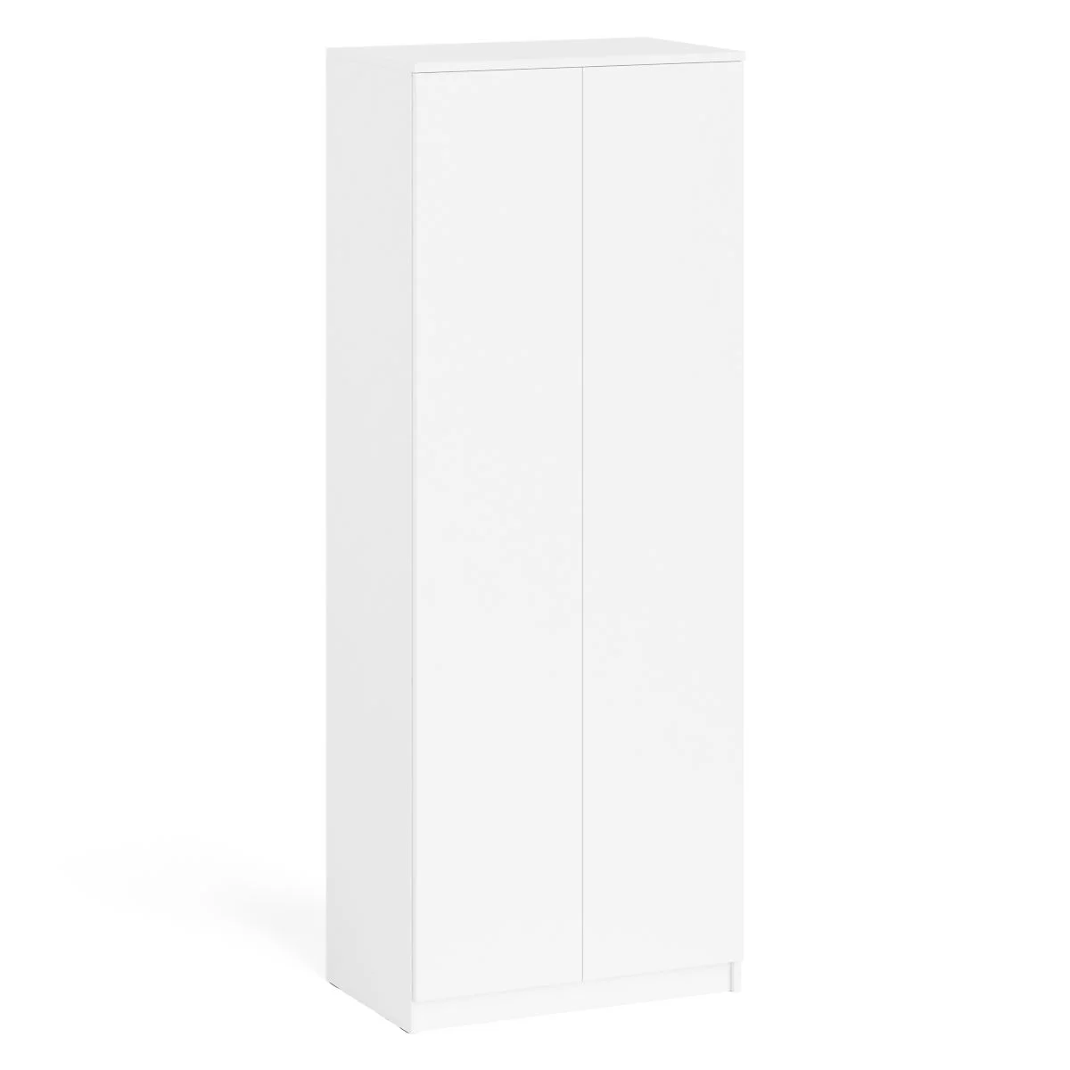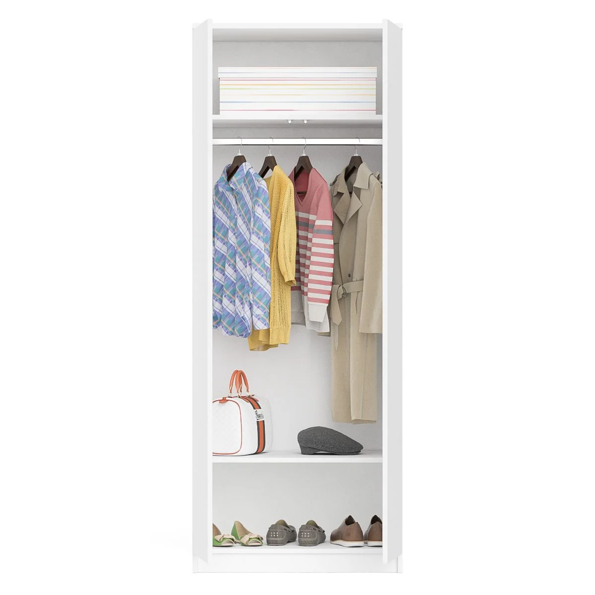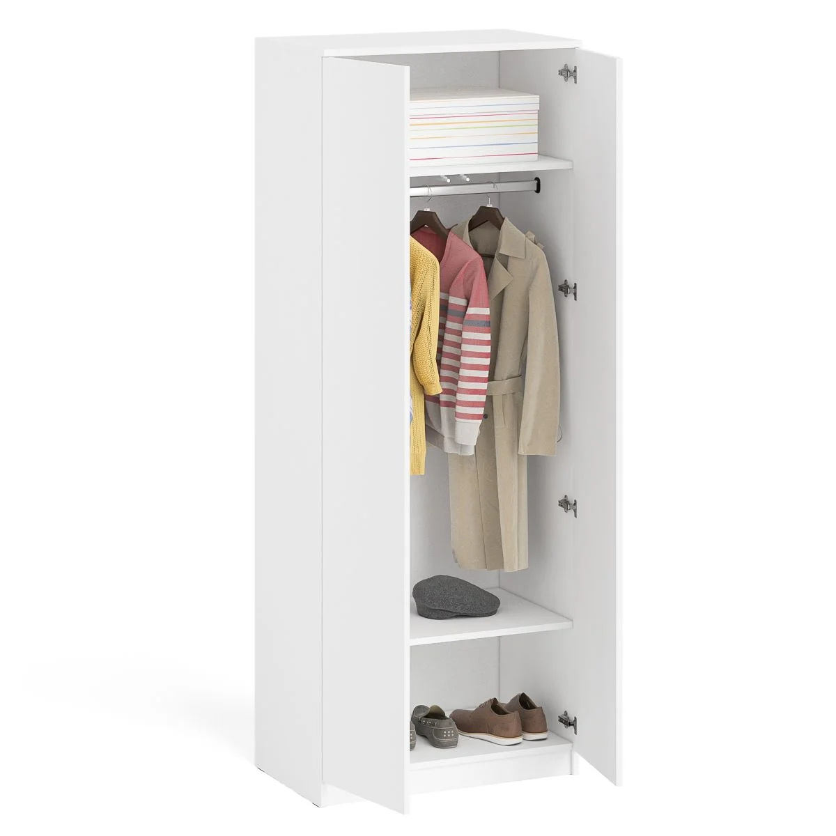 Шкаф оснащен двумя распашными дверями, открывающимися за счет системы Push-to-open, что обеспечивает удобство и простоту использования. В комплекте поставляется подробная инструкция по сборке и фурнитура. Габариты шкафа составляют 80,4 х 50,4 х 209,6 см, что позволяет разместить в нем большое количество вещей. Шкаф имеет три секции: две полки и штанга для вешалок.