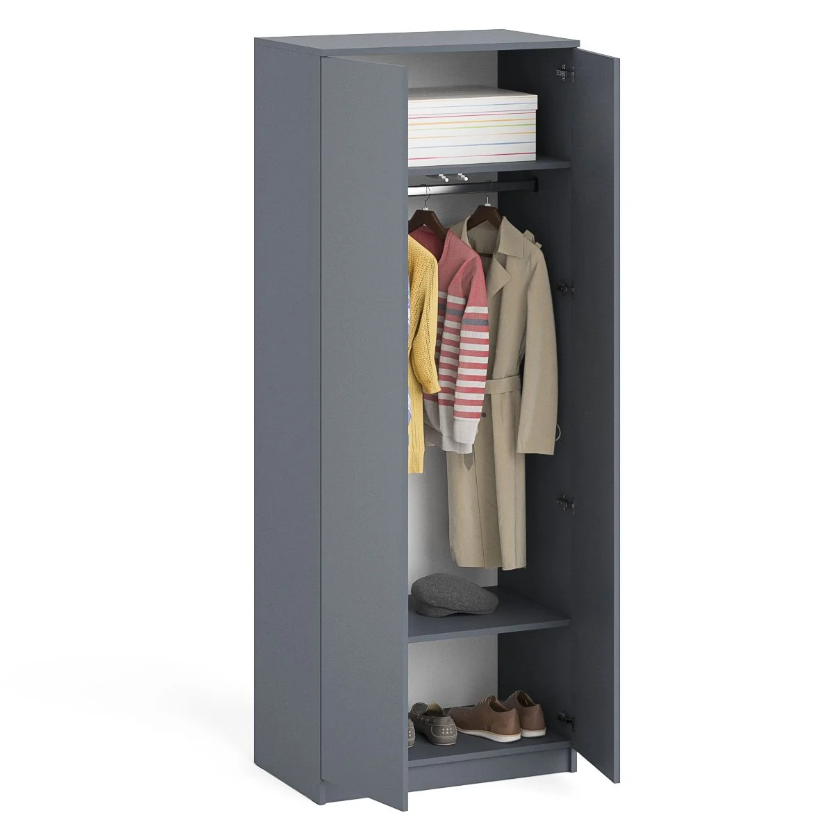 Шкаф распашной МШ 800.1 графит - это стильное и функциональное решение для хранения одежды, обуви и аксессуаров. Изготовленный из качественного ЛДСП толщиной 16 мм, этот шкаф обеспечит долговечность и надежность в использовании. Торцы корпуса и фасадов обработаны ПВХ пленкой толщиной 0,4 мм, что придает изделию эстетичный вид и защищает от повреждений.