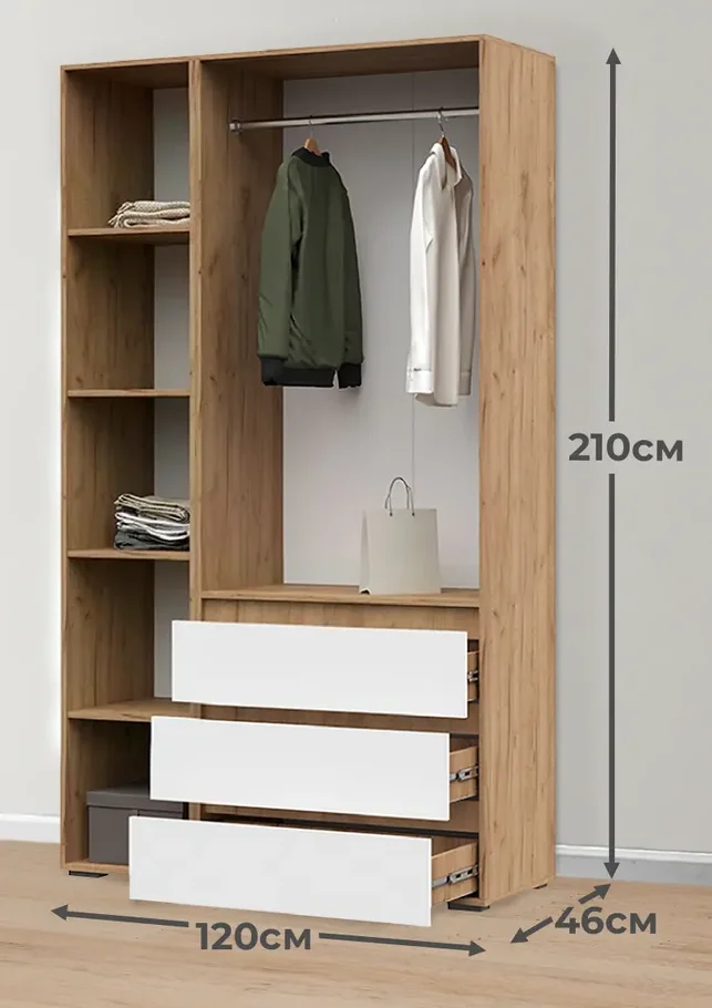 Особенностью шкафа является наличие выдвижных ящиков, которые обеспечивают дополнительное пространство для хранения различных вещей. Это позволяет максимально эффективно использовать пространство и делает использование шкафа еще более удобным. Шкаф Хелен ШК-06 обладает рядом преимуществ, которые делают его отличным выбором для любого дома. Он сочетает в себе стильный дизайн, функциональность и практичность, что делает его незаменимым элементом интерьера.