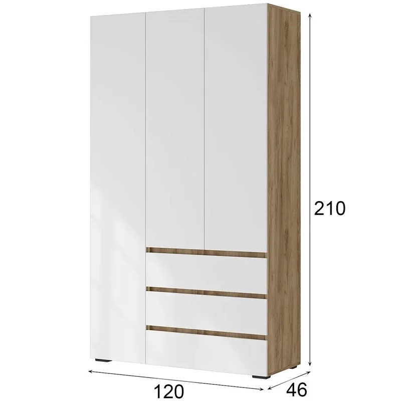 Шкаф Хелен ШК-06 представляет собой широкий 3-х створчатый шкаф, который станет отличным дополнением к вашему интерьеру. Благодаря своему дизайну, он легко впишется в любой стиль оформления помещения, будь то классический, современный или скандинавский. Корпус шкафа выполнен из ЛДСП цвета дуб крафт золотой, что придает ему роскошный и элегантный вид. Фасад шкафа выполнен из того же материала, но в белом цвете, что делает его еще более привлекательным и визуально легким.
