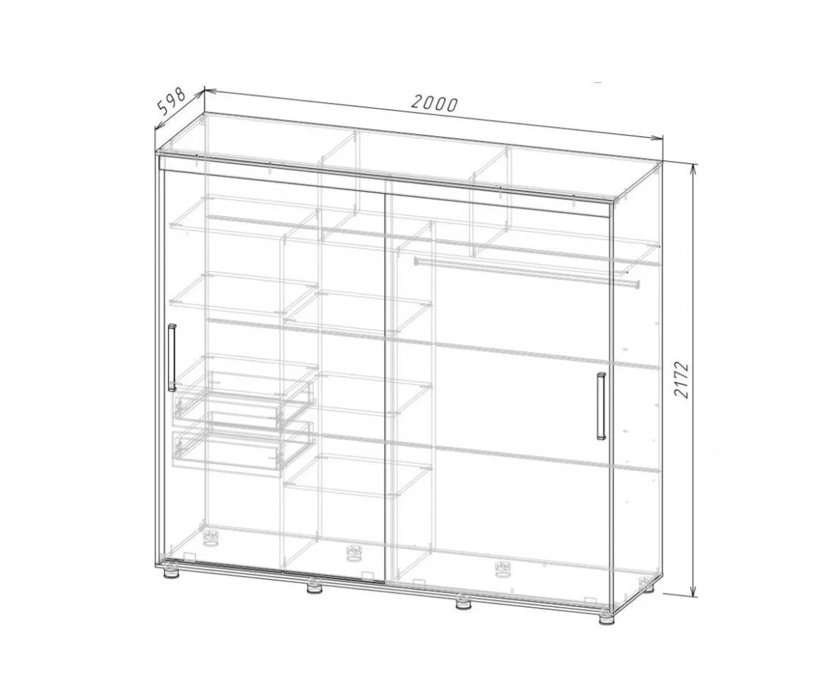 Регулируемые по высоте опоры позволяют устанавливать шкаф вплотную к стене, не затрагивая установленный напольный плинтус, а также дают возможность компенсировать неровности пола.