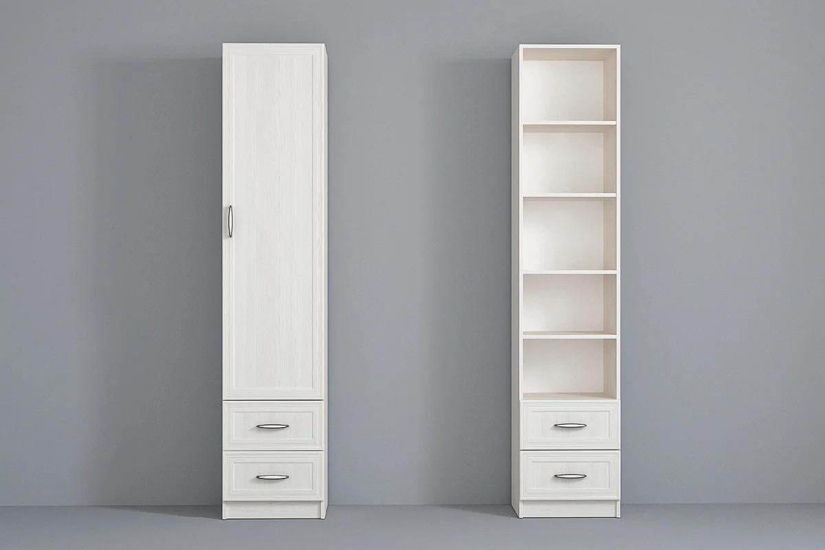 Расположение створки в пенале может быть как правым, так и левым. Мебель изготовлена из ЛДСП.