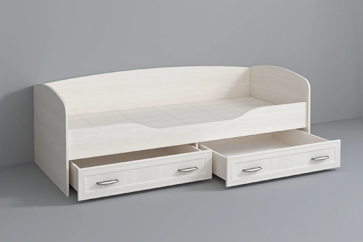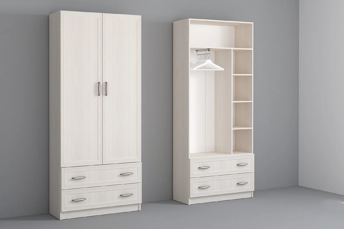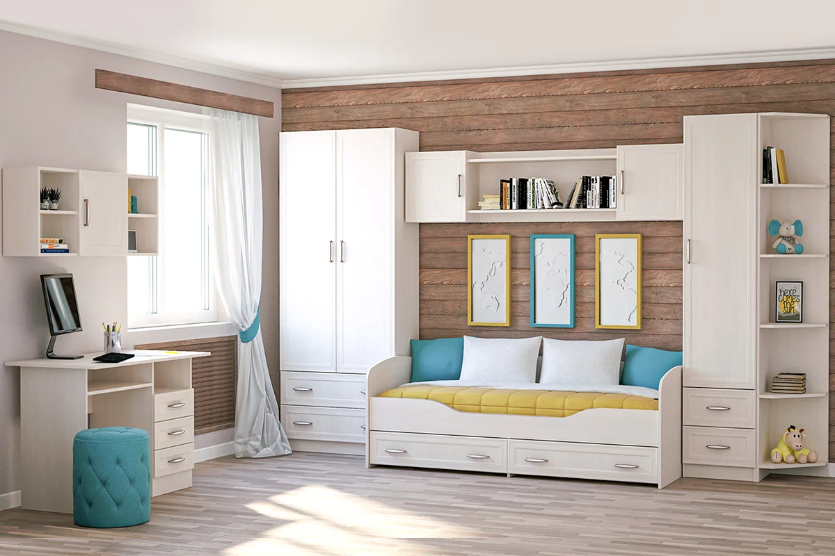 Шкаф имеет габариты 900 х 2100 х 390 мм и оснащён выдвижной штангой. Пенал — 450 х 2100 х 390 мм. Навесная полка — 1940 х 450 х 260 мм. Кровать — 1942 х 700 х 860 мм, спальное место — 800 х 1900 мм.