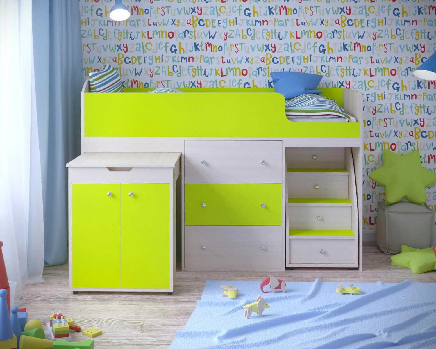 Корпус: дуб молочный. Цвет фасада лайм. Материал ЛДСП.