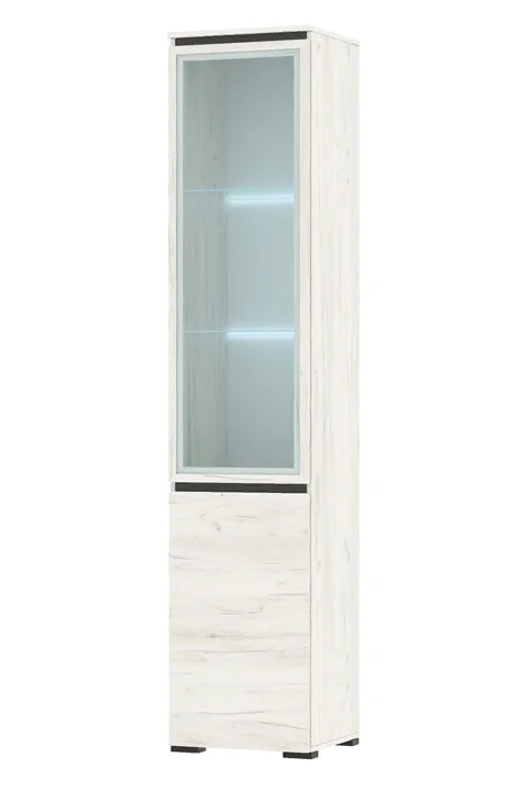 Пенал-витрина Гретта 1В1С устанавливается на пол, что обеспечивает устойчивость и безопасность использования.
