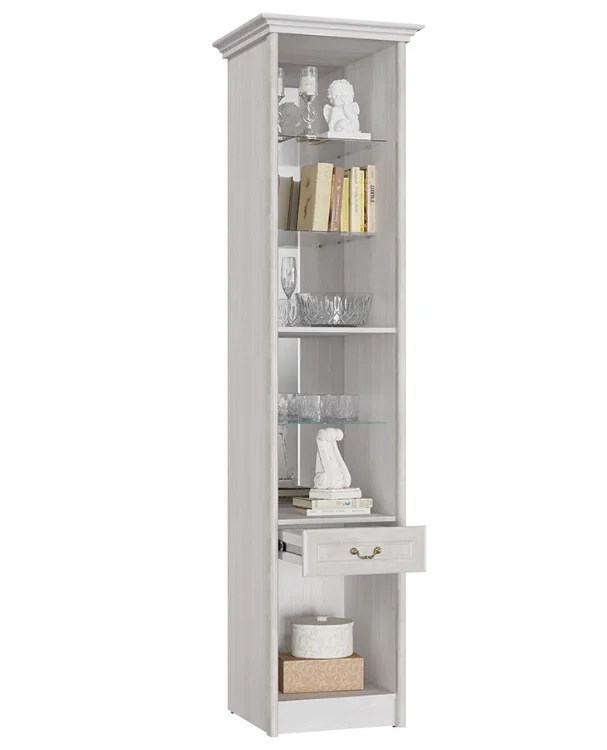 Размер с карнизом: ВхШхГ 2295 х 548 х 580 мм; без карниза: 2260 х 478 х 545 мм. Карниз в комплекте. Стеклофасад: витраж (фото) или ромбы.