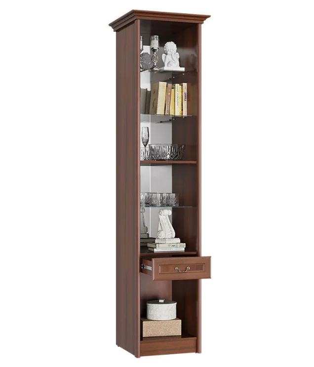 Размер с карнизом: ВхШхГ 2295 х 548 х 580 мм; без карниза: 2260 х 478 х 545 мм. Карниз в комплекте. Стеклофасад: витраж (фото) или ромбы.