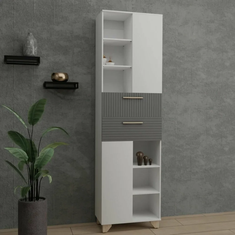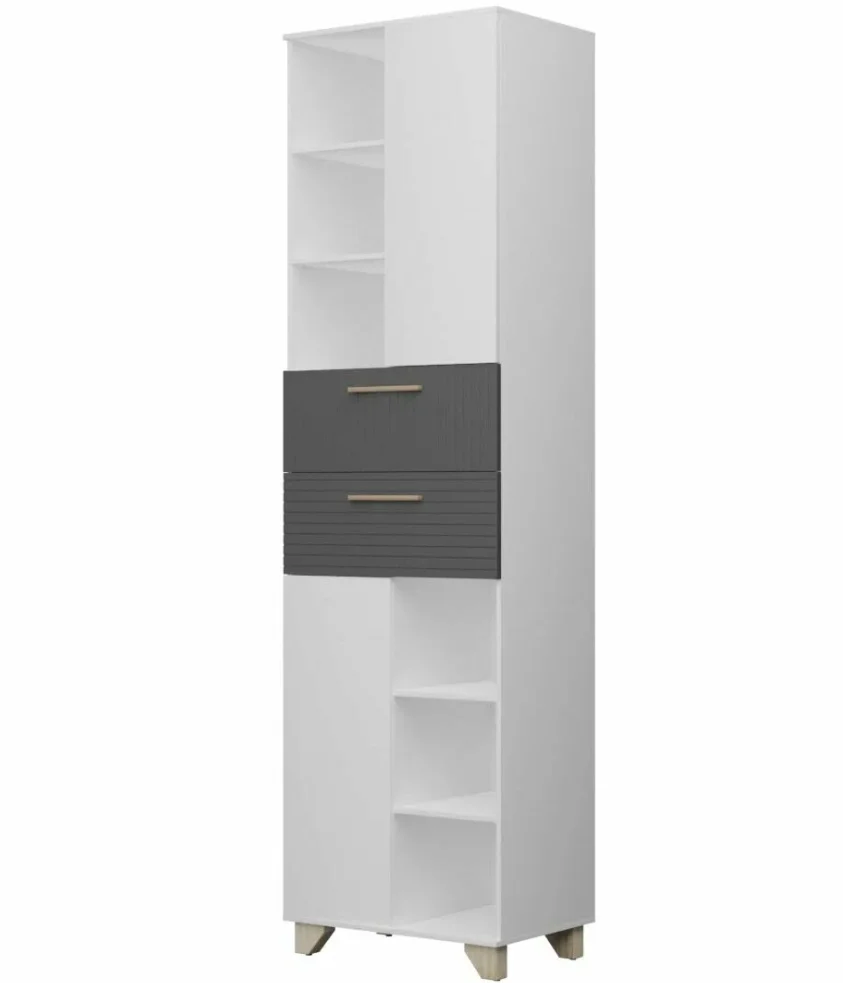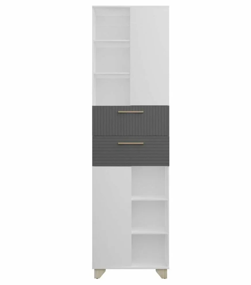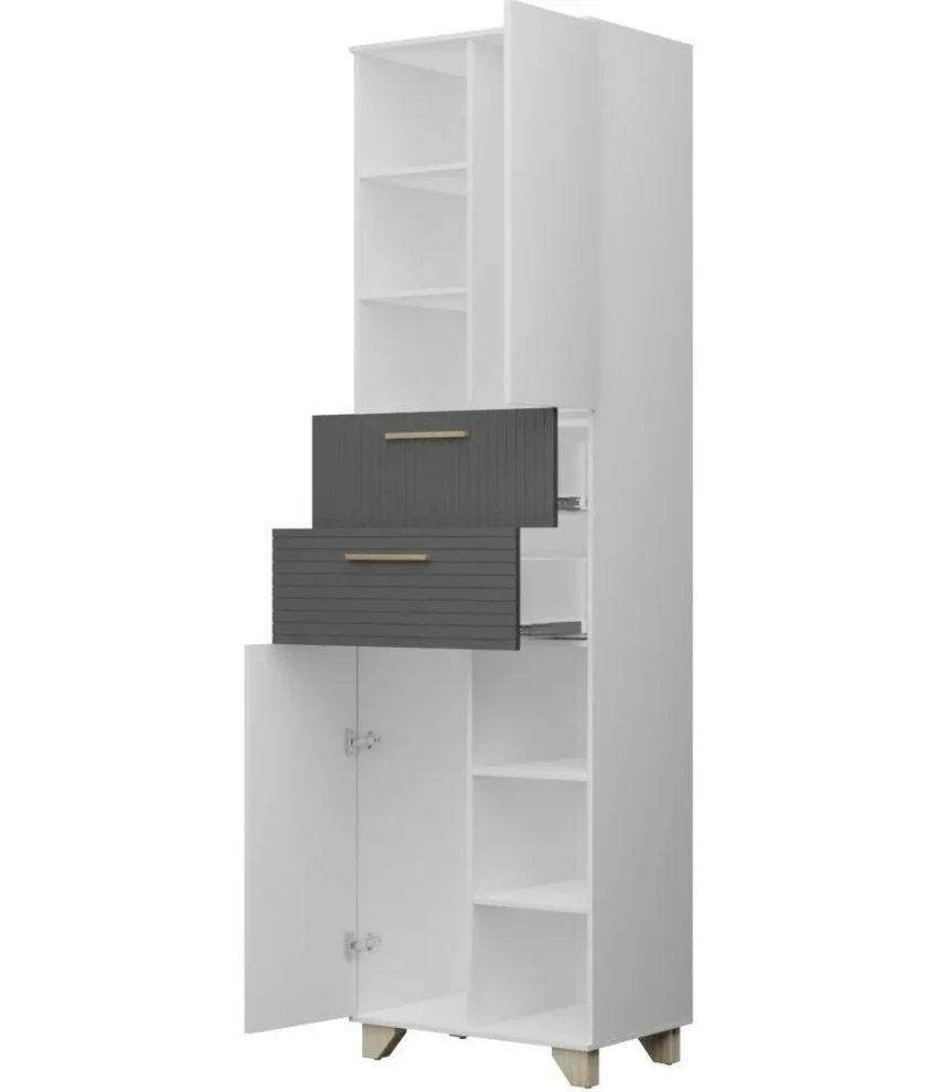 Ящики оснащены ручками из натурального массива дуба. Ножки, выполненные из массива дерева, имеют регулировку по высоте. Корпус ЛДСП белый. Фасад МДФ серый графит.
