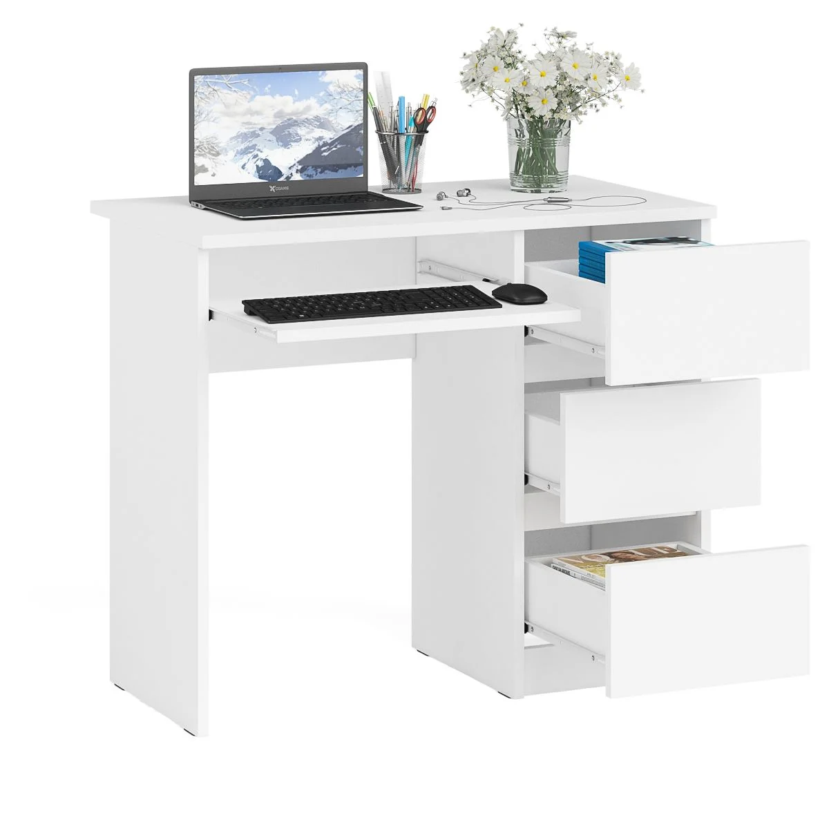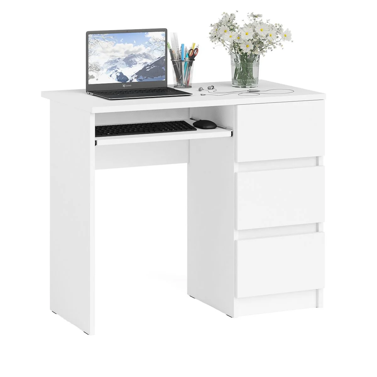 Особенностью стола является наличие трех выдвижных ящиков справа, что позволяет удобно хранить необходимые предметы и аксессуары. Также предусмотрена полка для клавиатуры, что обеспечивает дополнительное удобство при работе за компьютером. Размеры стола составляют 90 х 50 х 76,6 см, что позволяет разместить его даже в небольших помещениях. Выбирая стол компьютерный 3 ящика МС-6 белый (правый), вы получаете не только стильный и функциональный элемент интерьера, но и надежного помощника в организации рабочего пространства.