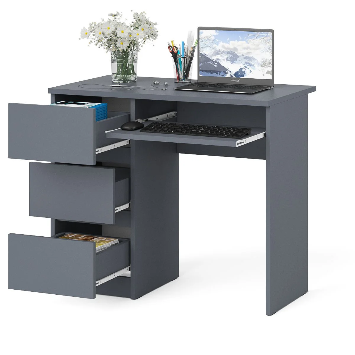 Стол имеет размеры 90 х 50 х 76,6 см, что позволяет разместить его даже в небольшом помещении. Выбирая стол компьютерный 3 ящика МС-6 графит (левый), вы получаете не только стильный и функциональный предмет мебели, но и надежного помощника в организации вашего рабочего пространства.