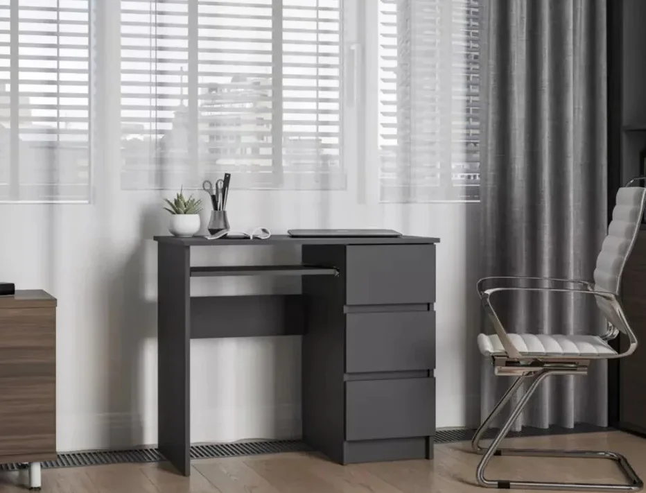 Стол имеет графитовый цвет, который придаст вашему рабочему месту стильный и современный вид. Особенностью стола является его конструкция. Ящики расположены справа, что позволяет удобно хранить необходимые предметы и документы. Глубина ящиков составляет 40 см, что обеспечивает достаточное пространство для хранения.