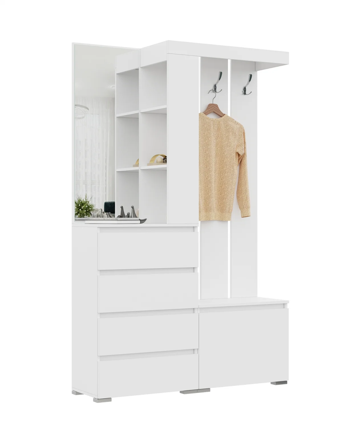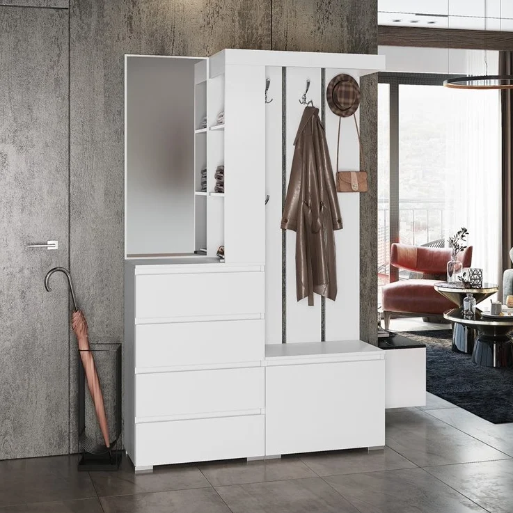 Особенностью прихожей Хельга является модульная конструкция, которая позволяет легко и быстро собрать мебель в соответствии с вашими потребностями. Направляющие шариковые полного выдвижения и четырех шарнирные накладные петли обеспечивают плавное и бесшумное открывание ящиков и дверей.